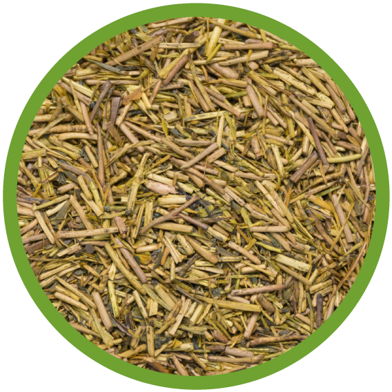 番茶や煎茶を強火で焙煎したお茶です。香ばしい香りとすっきりとした味わいが特徴です。葉を主体とした「ほうじ茶」と茎を主体とした「茎ほうじ茶」があります。