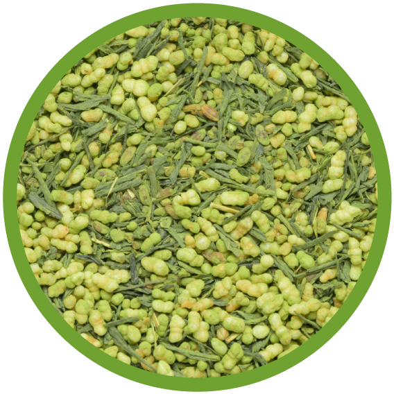 番茶や煎茶に玄米をブレンドした煎茶の香りと玄米の香りの調和したお茶です。さらに抹茶をブレンドした抹茶入り玄米茶は玄米の香りに加え抹茶の味わいとコクも楽しめるので人気があります。