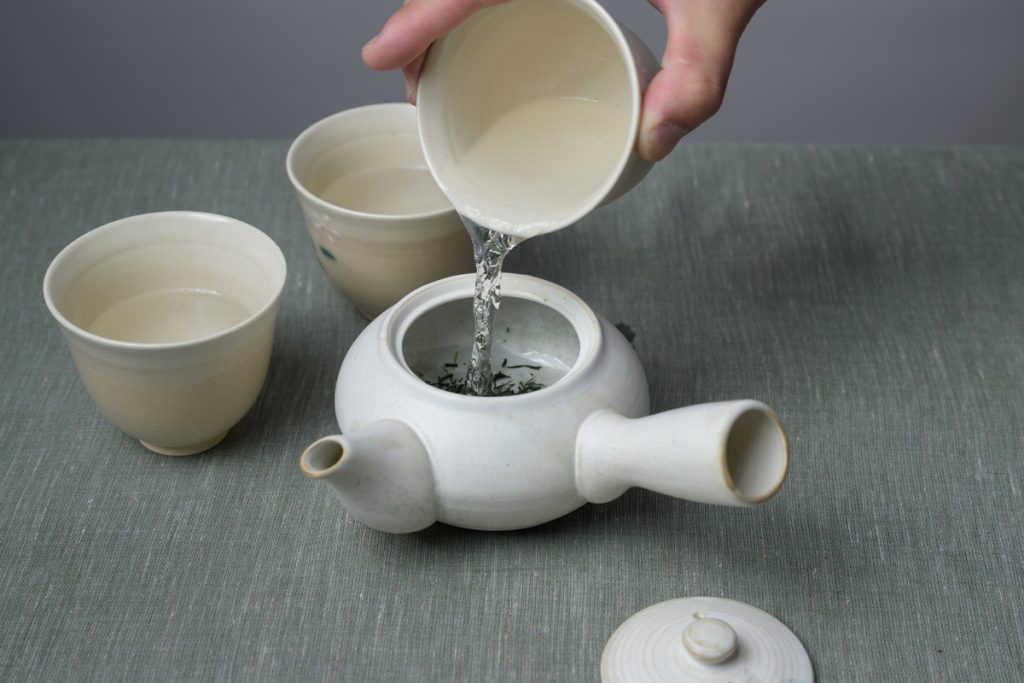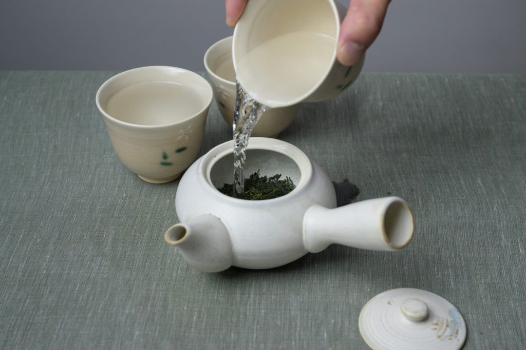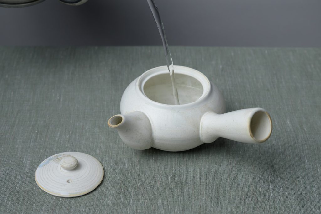 湯冷ましのため常温の急須にお湯注ぐことで沸騰しているお湯の温度が下がります。
