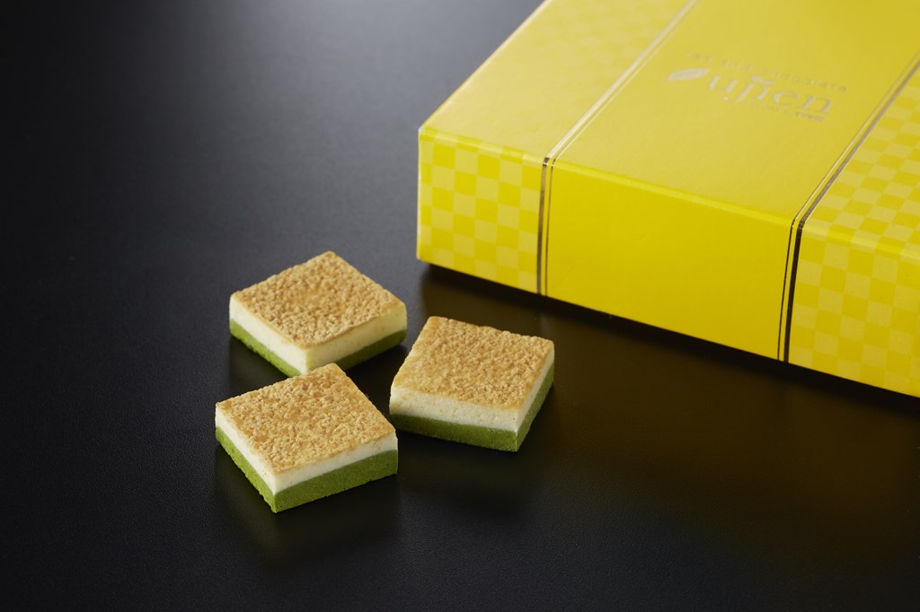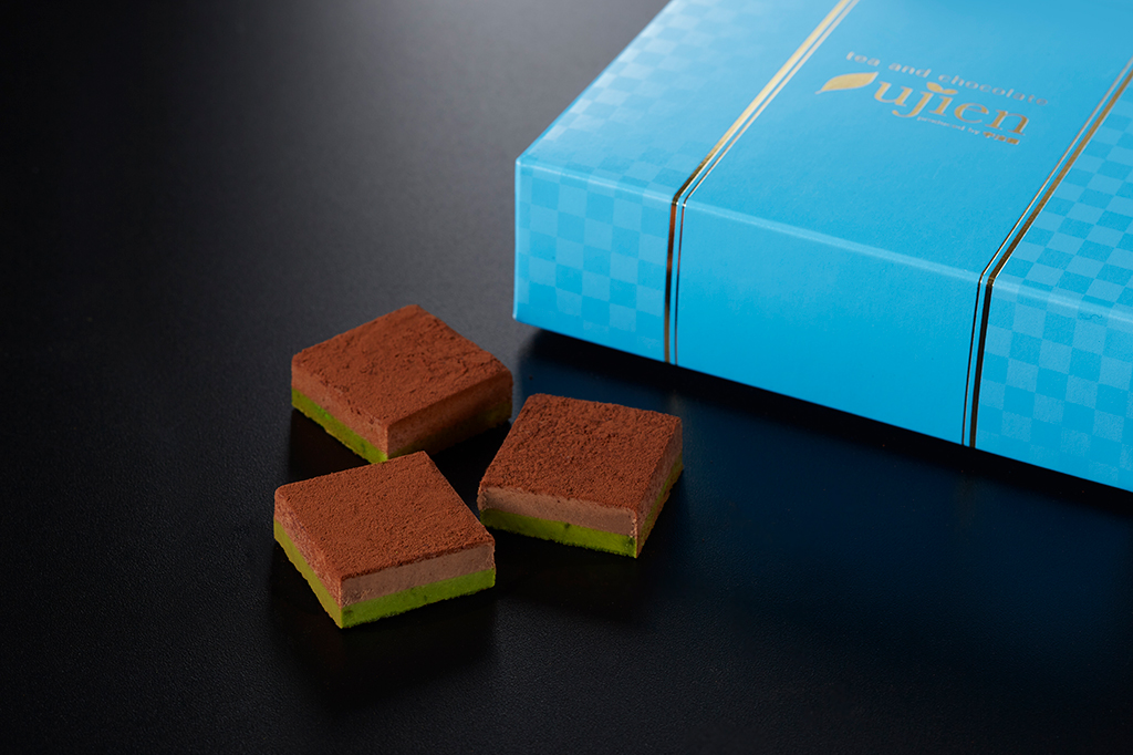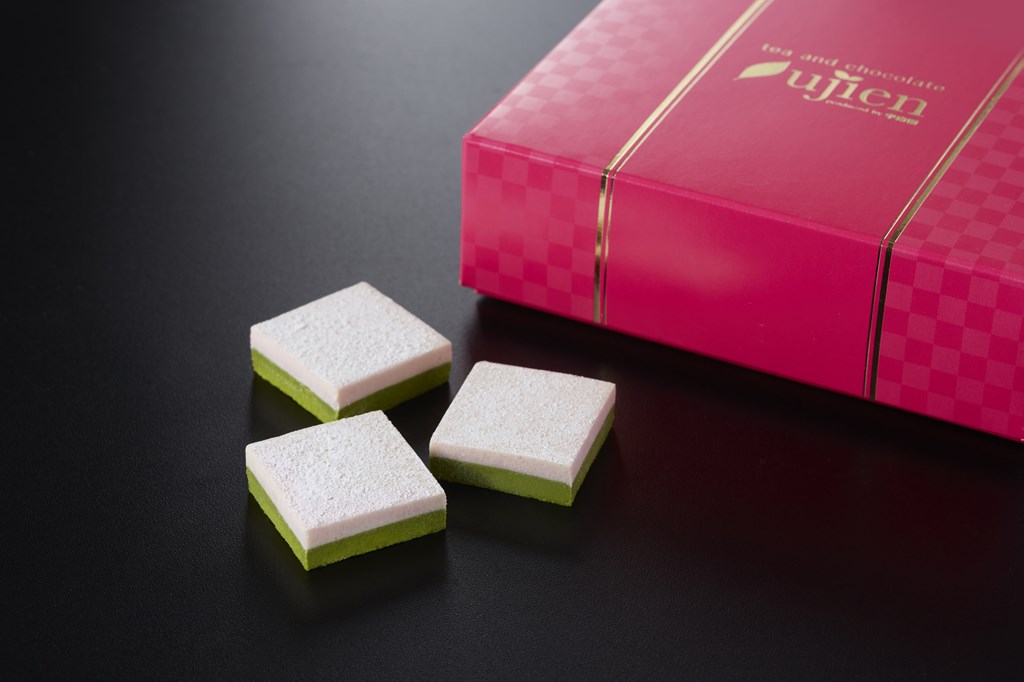 抹茶に合う小豆を添えたUjien定番抹茶テリーヌと生チョコストロベリーと抹茶テリーヌを2層にした